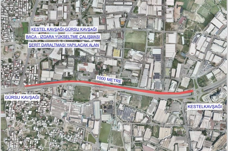 Bursa Büyükşehir Belediyesi Ulaşım Daire Başkanlığı tarafından Kestel Kavşağı ile İhtisas Kavşağı arasında yapılacak ızgara baca yükseltme işlemleri nedeniyle trafikte şerit daraltmasına gidilecek.