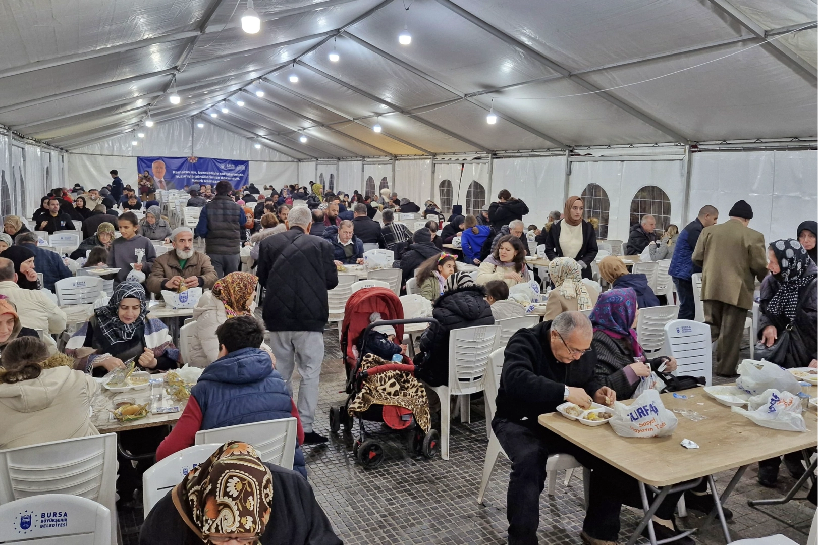 Birlik, beraberlik, yardımlaşma ve paylaşmanın simgesi 11 ayın sultanı Ramazan, Bursa Büyükşehir Belediyesi tarafından hazırlanan programla dolu dolu yaşanıyor. Fevzi Çakmak Katlı Otoparkı, Emirsultan Meydanı ve İnegöl İshak Paşa Meydanı Açık Otoparkı’nda her gün binlerce kişiye iftar yemeği veriliyor. Ramazan’ın ilk gününde vatandaşlar, Bursa Büyükşehir Belediyesi’nin oluşturduğu iftar sofralarındaki yerini alarak oruçlarını hep birlikte açtılar.