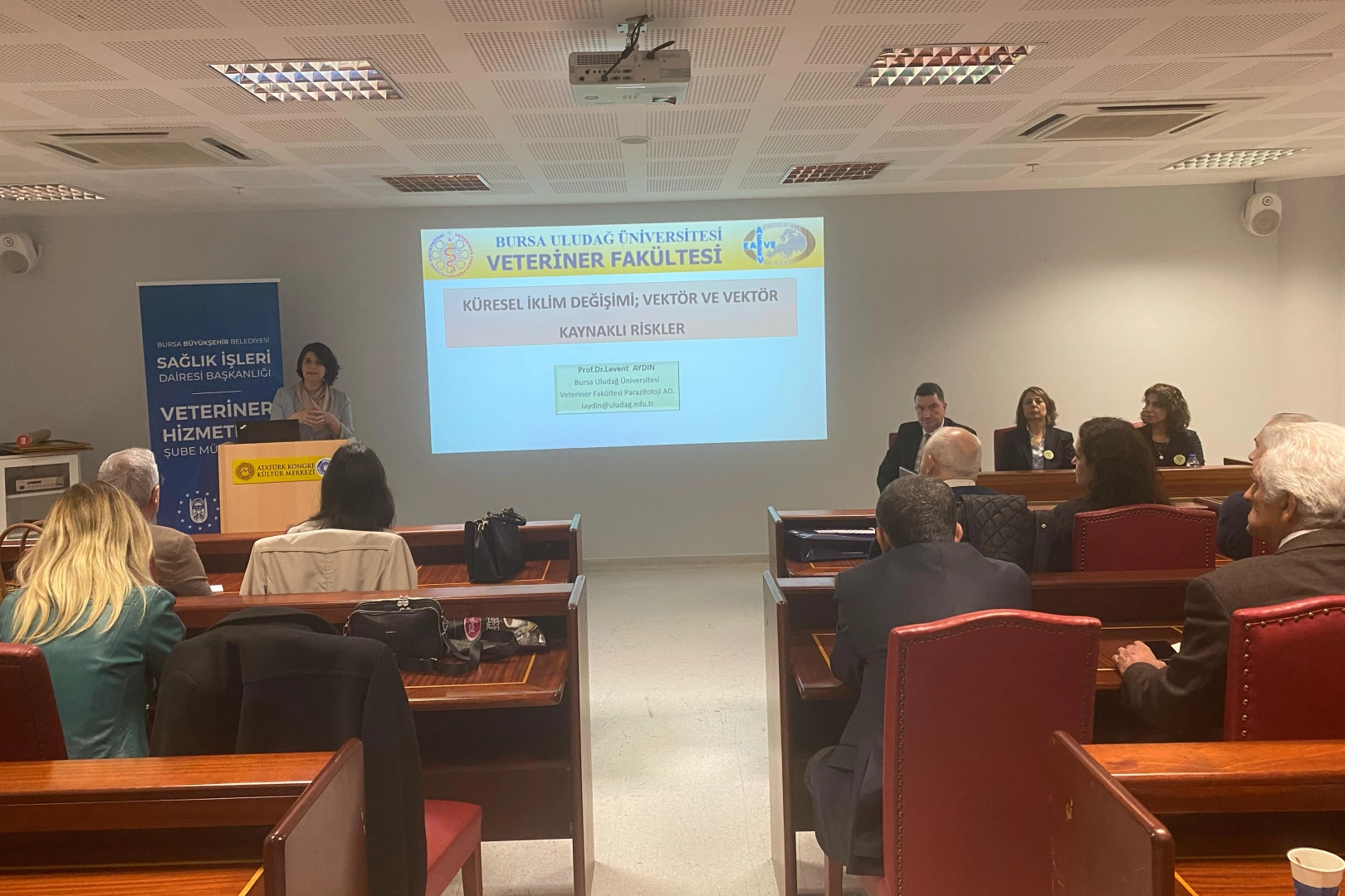 Bursa Büyükşehir Belediyesi Veteriner İşleri Dairesi Başkanlığı Veteriner Hizmetleri Şube Müdürlüğü’nün ev sahipliğinde, Bursa Dişhekimleri Odası, Bursa Eczacı Odası, Bursa Tabip Odası ve Bursa Veteriner Hekimler Odası iş birliği ile ‘İklim Krizi Kaynaklı Vektörel Hastalıklar Paneli’ gerçekleştirildi. Atatürk Kültür Merkezi Merinos Yerleşkesi’ndeki panele, Veteriner Hizmetleri Şube Müdürü Özlem Kartal, Bursa Veteriner Hekimler Odası Başkanı Melike Baysal, Bursa Uludağ Üniversitesi’nden Prof. Dr. Levent Aydın, Prof. Dr. Emel Yılmaz, akademik odaların temsilcileri ve vatandaşlar katıldı.