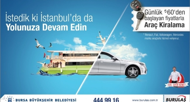 Bursa Ulaşım Toplu Taşım İşletmeciliği (BURULAŞ), deniz otobüsü, deniz uçağı ve helitaksinin ardından kiralık araç hizmeti vermeye başladı.