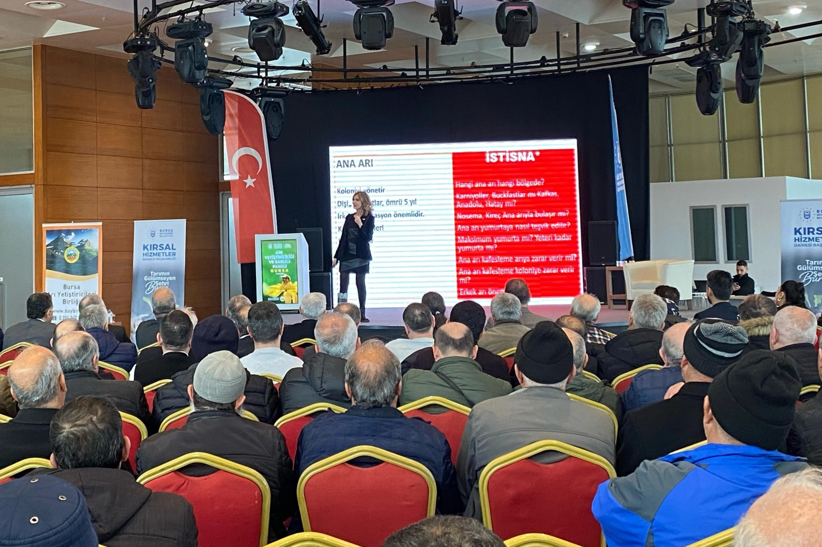 Açılış konuşmalarının ardından panel bölümüne geçildi. Hacettepe Üniversitesi Fen Fakültesi Biyoloji Bölümü’nden Prof. Dr. Aslı Özkırım ve Ege Üniversitesi Ziraat Fakültesi Zootekni Bölümü’nden Prof. Dr. Banu Yücel tarafından ‘Arı sağlığı’ ve ‘Arı yetiştiriciliği’ konularında katılımcılara bilgi verildi.