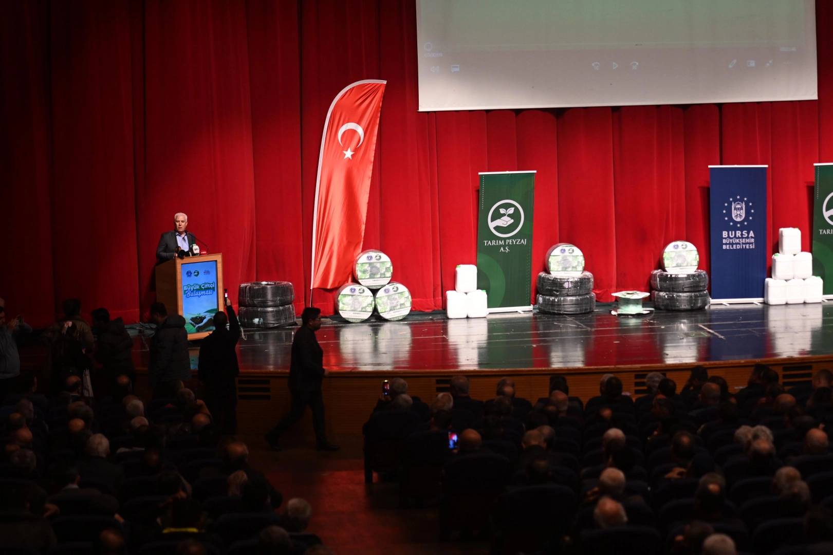 Tarım Peyzaj AŞ Yönetim Kurulu Başkanı Mehmet Aydın Saldız, düzenlenen Büyük Çiftçi Buluşması'na katılan tüm üreticilere teşekkür etti. Tarım Peyzaj AŞ Genel Müdürü Sedat Akar, Bursa tarımında yaşanan sorunlardan toplumun tüm kesimlerinin etkilendiğini söyledi. Çiftçinin üretim konusunda büyük zorluklar yaşadığını anlatan Akar, “Bursa Büyükşehir Belediyesi iştiraklerinden Tarım Peyzaj AŞ olarak bu tabloyu değiştirmek için çiftçiye nefes aldıracak projeler geliştiriyoruz. Bursa’nın bereketli topraklarını en iyi şekilde değerlendirmek, tarımsal üretimi daha sağlıklı hale getirmek için çalışmalarımıza devam edeceğiz” diye konuştu.