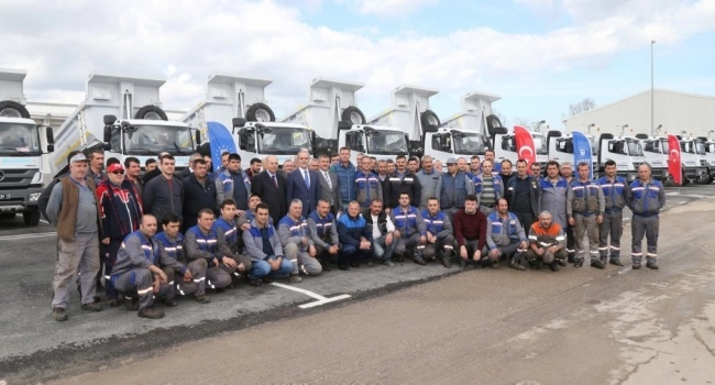 "Biz de 'alet işler el övünür' mantığıyla araç filomuzu her geçen gün güçlendiriyoruz. Yeni aldığımız 8 damperli kamyon ve 6 arazöz de yaklaşım 3,5 milyon liraya mal oldu. 17 ilçede arazi ve tarla yollarıyla birlikte yaklaşık 7 bin kilometrelik yol ağında hizmet veriyoruz. Yol yapım malzemelerini taşıyacak bu araçlarımızla filomuza güç katmış olduk. Bu araçlarımız çok fonksiyonlu araçlar. Sadece yol çalışmalarında değil, olası yangınlara anında müdahale etme kabiliyetleri de var. Son 8 ayda alınan yaklaşık 60 milyon liralık 235 yeni hizmet aracı ile Büyükşehir araç filosu 998 araca ulaştı. Araçlarımız Bursa'ya ve ilçelerimize hayırlı olsun."