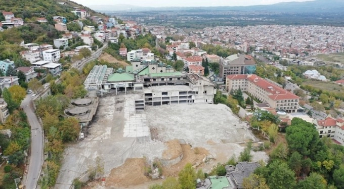 Bursa Büyükşehir Belediyesi'nin Çevre ve Şehircilik Bakanlığı işbirliğiyle hayata geçireceği Çekirge Teras Projesi kapsamında 20 yıldır atıl halde duran Çelik Palas Oteli ek binalarında başlatılan yıkımın birinci etabı tamamlandı.