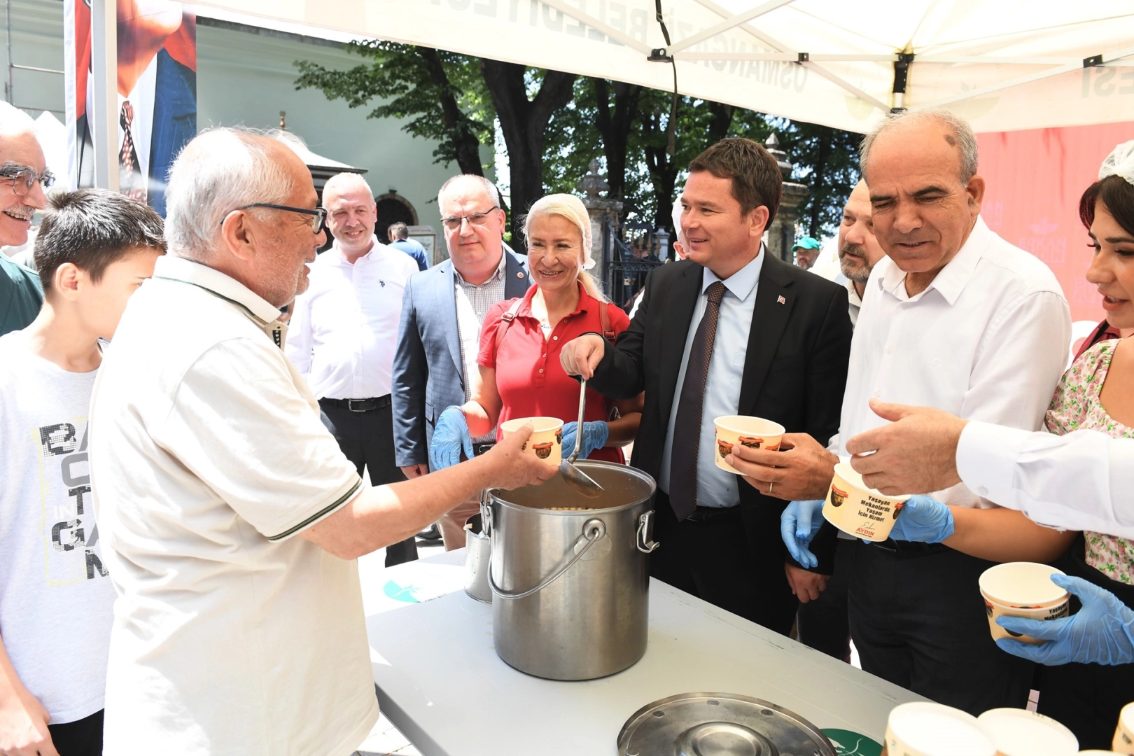 Osmangazi Belediye Başkanı Erkan Aydın, Muharrem ayı vesilesiyle kazanların başına geçerek vatandaşlara aşure dağıttı. Başkan Aydın, aşure ikramının ardından Osmanlı Devleti’nin savaş meydanlarında şehit olan ilk ve tek padişahı 1. Murad Hüdavendigar’ın türbesini ziyaret ederek, şehit padişahı vefatının 636’ıncı yılında dualarla andı.