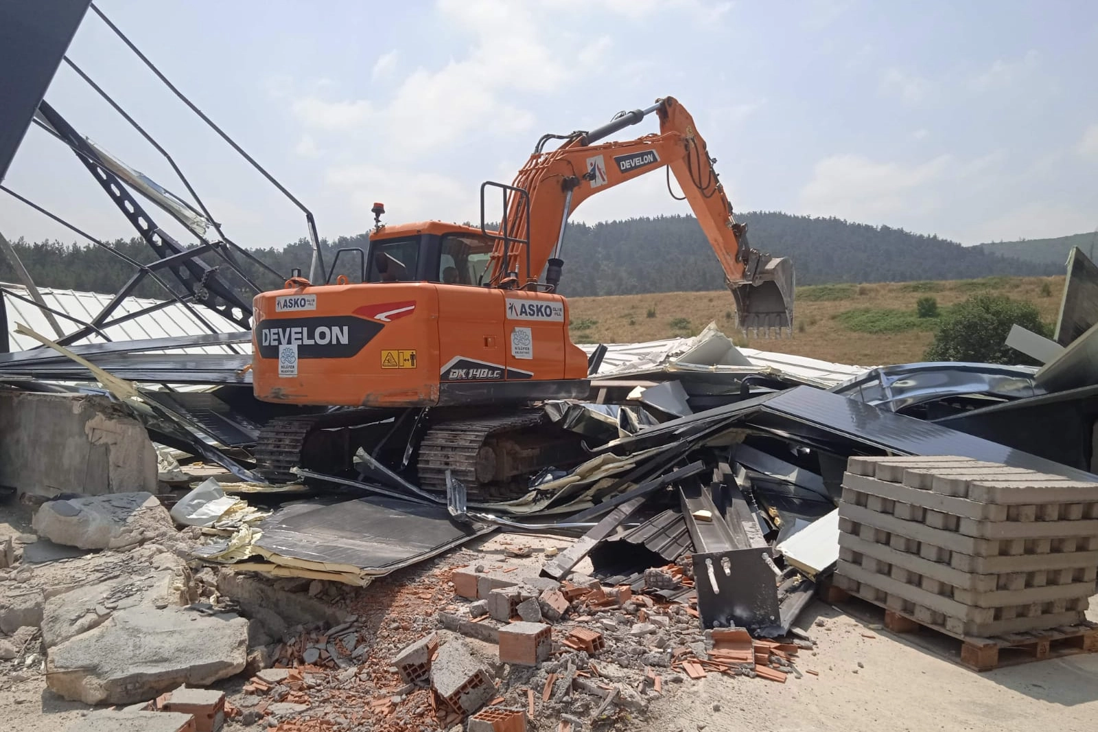 Yıkım çalışması, polis ve zabıta ekiplerinin aldığı güvenlik önlemleri eşliğinde gerçekleştirildi. Kaçak fabrikanın işletmecisi tarafından yıkımı engellemek amacıyla bina çevresine yerleştirilen iş makinesi ve parke taşı gibi engeller, belediye ekipleri tarafından kaldırıldı. Ardından yapının içindeki malzemeler boşaltılarak, kaçak fabrika tamamen yıkıldı.