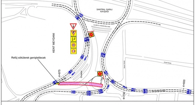 Büyükşehir Belediyesi Ulaşım Dairesi Başkanlığı'ndan yapılan açıklamaya göre; Kent Meydanı Kavşağı'nda başlayan inşaat çalışmaları nedeniyle Gençosman Kavşağı'ndan Şehreküstü istikametine gidiş yönünde trafik akışının servis yolu olarak kullanılan otobüs peronlarının bulunduğu kesimden sağlanacağı belirtildi. Yetkililer, sürücüleri trafik akışına uymaları konusunda uyarıldı.
