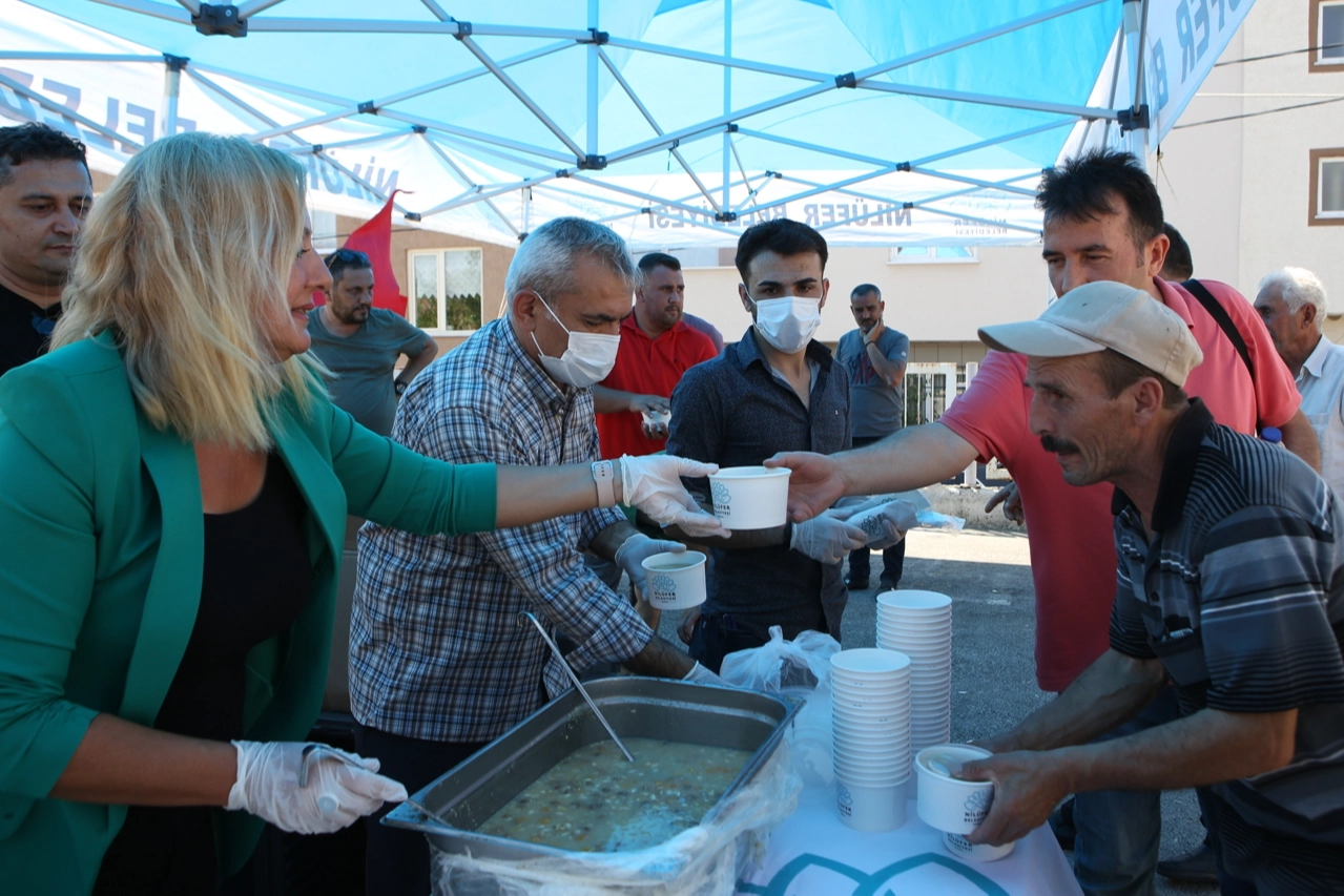 Muharrem ayının simgesi olan Aşure Günü nedeniyle dağıtım yapan Nilüfer Belediyesi, Minareliçavuş Mahallesi’nde ikramlara başladı. Pazar alanında yapılan 750 kişilik aşure dağıtımına, Nilüfer Belediyesi Başkan Yardımcısı Dr. Sibel Özer katıldı. Aşure kazanının başına geçen Sibel Özer, kendi elleriyle -ikramda bulunarak vatandaşların Muharrem ayını kutladı. Vatandaşlar da ikramdan dolayı Turgay Erdem ve Nilüfer Belediyesi’ne teşekkür etti.