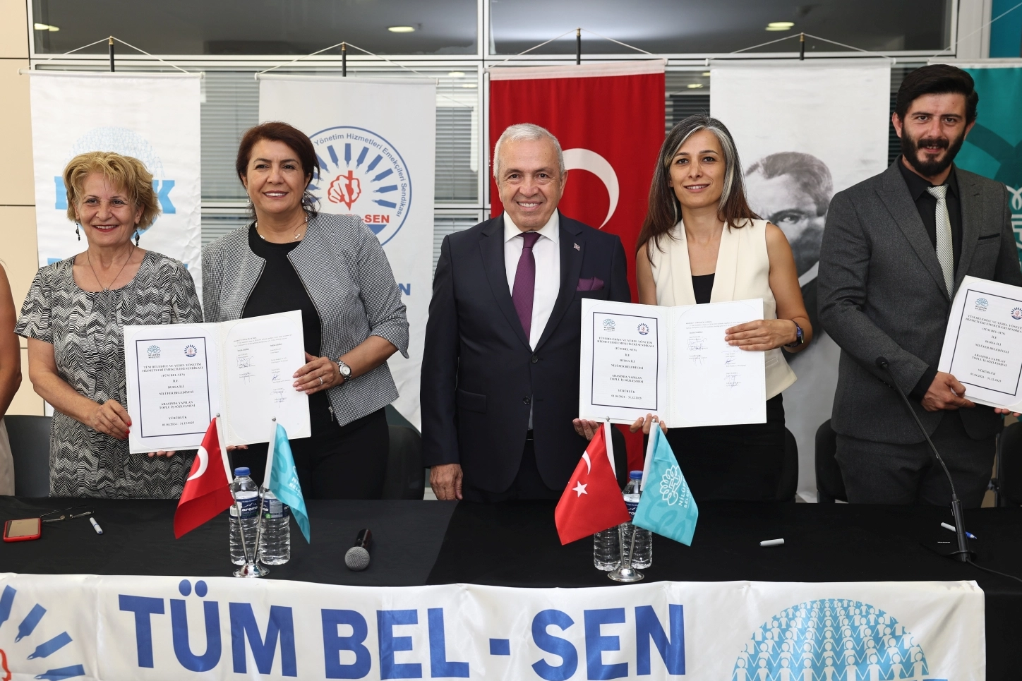 Konuşmaların ardından Nilüfer Belediye Başkanı Şadi Özdemir ve TÜM-BEL-SEN Bursa Şube Başkanı Pınar Koşal toplu iş sözleşmesine imza attı. Yeni imzalanan sözleşme alkışlar ve şarkılar eşliğinde kutlandı.