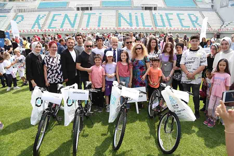 Okul ortalamaları ve başarılarıyla Nilüfer’in gururu olan öğrenciler, Nilüfer Belediyesi tarafından ödüllendirildi. Derslerinde başarılı olan öğrencilere karne hediyesi olarak bisiklet armağan edildi. Bu yıl 15'inci kez düzenlenen “En Çalışkan Kim? Bisiklet Dağıtım Şenliği”, Nilüfer Belediyesi İbrahim Yazıcı Stadyumu’nda düzenlendi. Bisiklet Dağıtım Şenliği’ne Nilüfer Belediye Başkanı Turgay Erdem, Nilüfer’in kardeş kenti Bingöl Yayladere Belediye Başkanı Sabri Akyürek, Cumhuriyet Halk Partisi Nilüfer İlçe Başkanı Fırat Yılmaz, belediye meclis üyeleri, okul idarecileri, öğrenciler ve aileleri de katıldı.