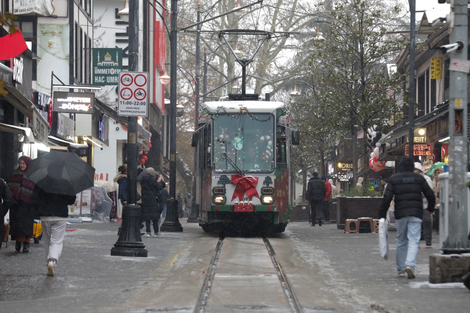 Yılbaşı temasıyla süslenen nostaljik tramvay, vatandaşlardan büyük ilgi gördü. Işıklar ve özel süslemelerle donatılan tramvayı gören vatandaşlar, yeni yıl atmosferini fotoğraf kareleriyle ölümsüzleştirerek keyifli anlar yaşadı.