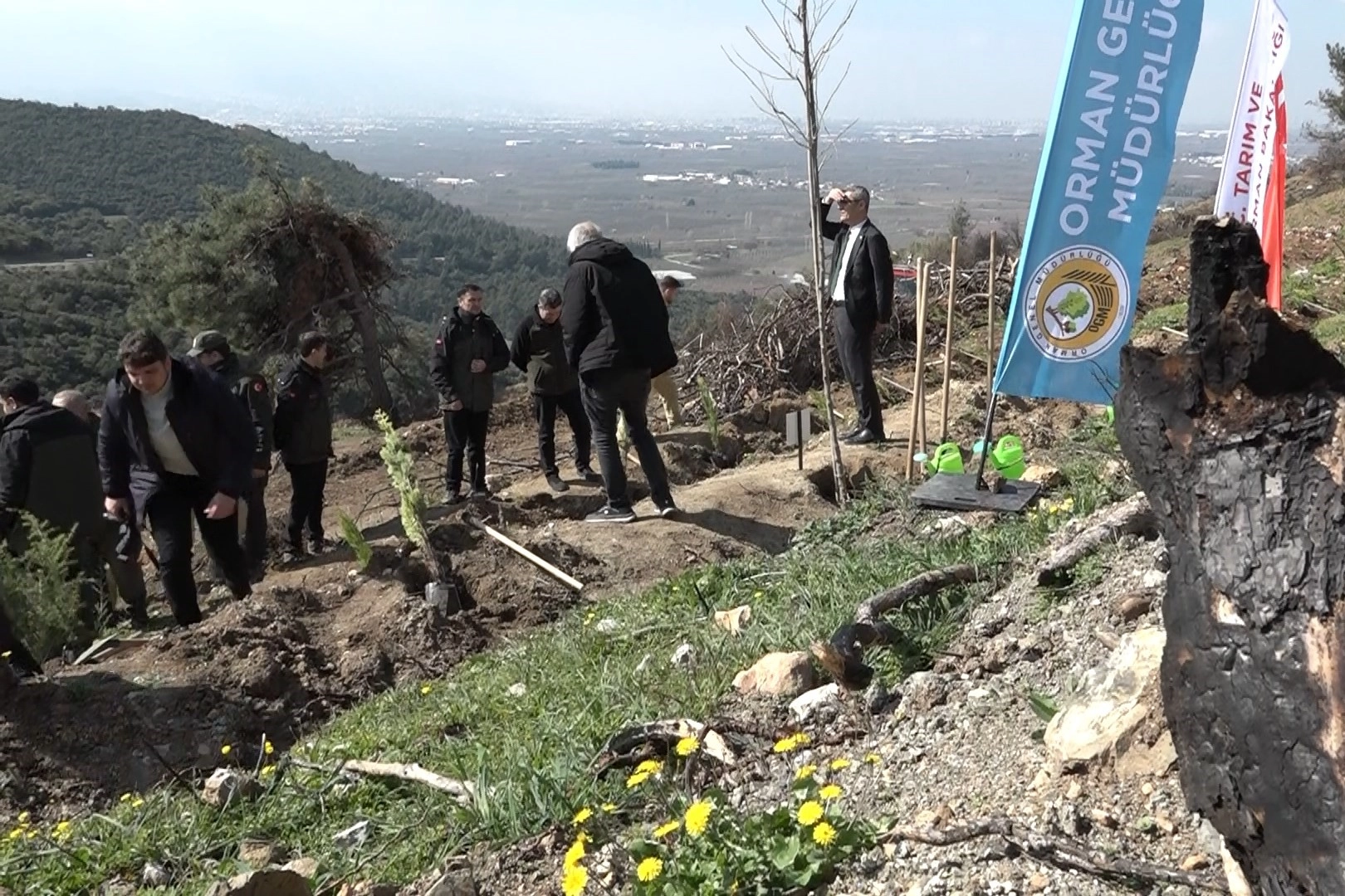 Biz Orman Genel Müdürlüğü ve Bursa Orman Bölge Müdürlüğü olarak yanan alanlarda kısa sürede hasar tespiti çalışmaları ve rehabilitasyon çalışmalarına başladık. Bin 434 hektar sahada tabiî gençleştirme çalışması, 2 bin 390 hektar sahada suni gençleştirme çalışması ve bin 481 hektar sahada da ağaçlandırma çalışmaları yaptık. Ayrıca 149 hektar taşlık kayalık alanlarda da rehabilitasyon çalışması yaptık. Bunları yaparken 17 kilometre yeni yangın müdahale zonları oluşturduk. 100 kilometre yeni yol yaptık. 2 bin 941 kilometrede teras tesis ettik. Bu 2 bin 941 kilometre yeni tesis etmiş olduğumuz teraslara ise 2 milyon 267 bin adet fidan diktik. Ayrıca, tohumun yeterli olmadığı, az olduğu yerlerde de 25 ton tohum attık. Bugün itibariyle Bursa ilinde yanan alanlarımızdaki yeniden rehabilitasyonu, fidan dikilmesi, tohum atılması çalışmalarını yüzde 99 oranında bitirdik. Bugün son fidanlarımızı siz değerli basın mensuplarıyla beraber dikiyoruz."