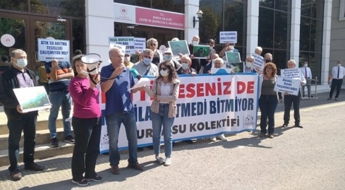 Basın açıklamasını Bursa Su Kolektifi adına Habib Göbelez ve Esen Ocak okudu. Açıklamada, Çevre ve Şehircilik Bakanı Murat Kurum'un 'Marmara'mızın 26 gün öncesinden daha iyi olduğunu gözle görür hale geldik, 10 bin 500 metreküp müsilajı bertaraf ettik, derin sularda oksijen azalmasına ilişkin herhangi bir emare tespit edilmedi 'sözleri hatırlatılarak problemlere yüzeysel ve bilimsel gerçeklerden uzak yaklaşıldığı ifade edildi.