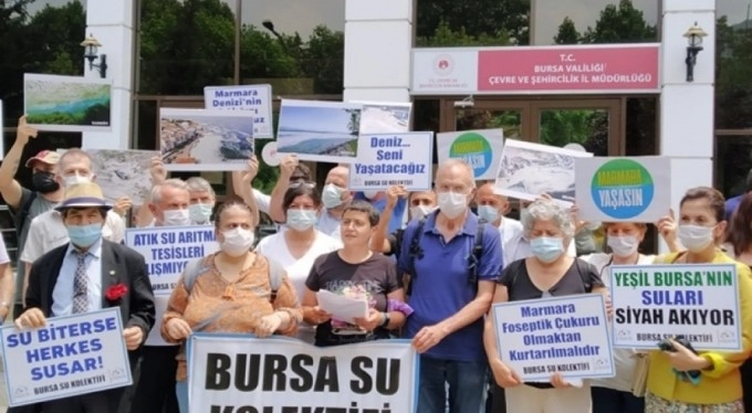 Basın açıklamasını Bursa Su Kolektifi üyesi Figen Ovat, yaptı. Ovat, "Doğayı ve yaşamı öncelik olmaktan çıkarıp her alanda sermayenin sınırsızca büyütülmesi uğruna doğa talanına fırsat veren neoliberal kapitalist politikalar 80'li yıllardan itibaren Marmara Denizi'nin evsel, tarımsal ve sanayi atıklarının serbestçe salınımı ile bir foseptik çukuruna dönüşmesine neden olmuştur." sözleriyle konuşmasına başladı.
