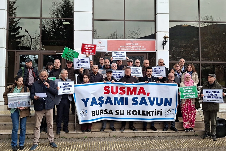 Bursa Su Kolektifi, Erzincan'ın İliç ilçesindeki Çöpler altın maden ocağında 9 işçinin ölümüyle sonuçlanan facianın 2. yıl dönümünde ve Bursa’nın Yenişehir ilçesine bağlı Kirazlıyayla’da yaşanan atık barajı çökmesine dikkat çekmek amacıyla Çevre, Şehircilik ve İklim Değişikliği İl Müdürlüğü önünde basın açıklaması gerçekleştirdi.