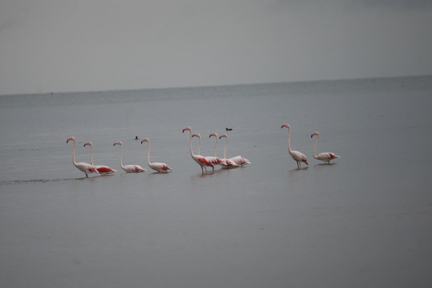 Göç yolunda olan flamingolar ise İznik Gölü Orhangazi sahilinde görüntülendi. Pembe ve beyaz renkleri ile göl sahilinde konaklayan flamingolar eşsiz bir görüntü ortaya çıkardı. Vatandaşlar cep telefonları ile flamingoları görüntüledi.