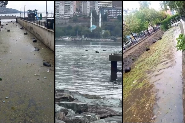 Yağmurla birlikte derede bulunan çöp poşetleri ve dağınık çöpler suyla birlikte denize doğru aktı. Bataklığa dönen deredeki kirlilik dikkat çekerken denize dökülüp Gemlik Körfezi'nde su yüzeyine çıkan poşetler ortalığı çöplüğe çevirdi.