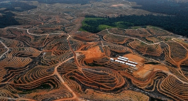 Yukarıda, Şubat 2014'te Endonezya'daki Borneo adasında çekilen bir fotoğrafı görüyorsunuz. Fotoğrafta orman arazisinde bulunan ağaçlar kesilerek, palm yağı üretimine uygun ağaçlar dikmek için yer açılıyor.