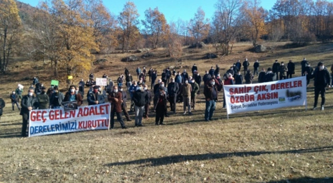 Doğaya ve suya sahip çıkmak için toplandıklarını dile getiren Kireçli Köyü'nden Tahsin Yazıcı, "Suyu borularla yerin altına hapsedecekler. Dere boyunca binlerce ağacı kesecekler. Dağlardan gürül gürül akan suyun sesi kısılacak. Sudan beslenen birçok canlı yok olacak. Köylerimizin çöl olmasını istemiyoruz." dedi.