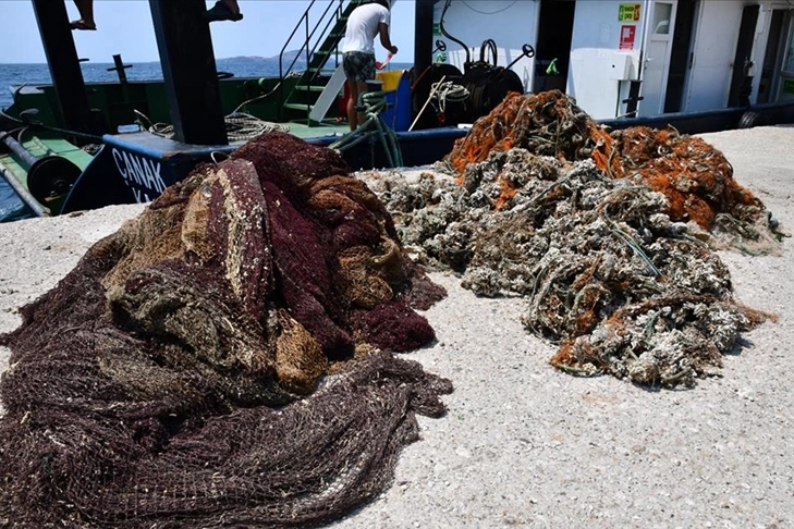Çalışmalar sırasında 2 futbol sahası büyüklüğünde "hayalet ağ", dalgıçlar tarafından denizden çıkarıldı.
