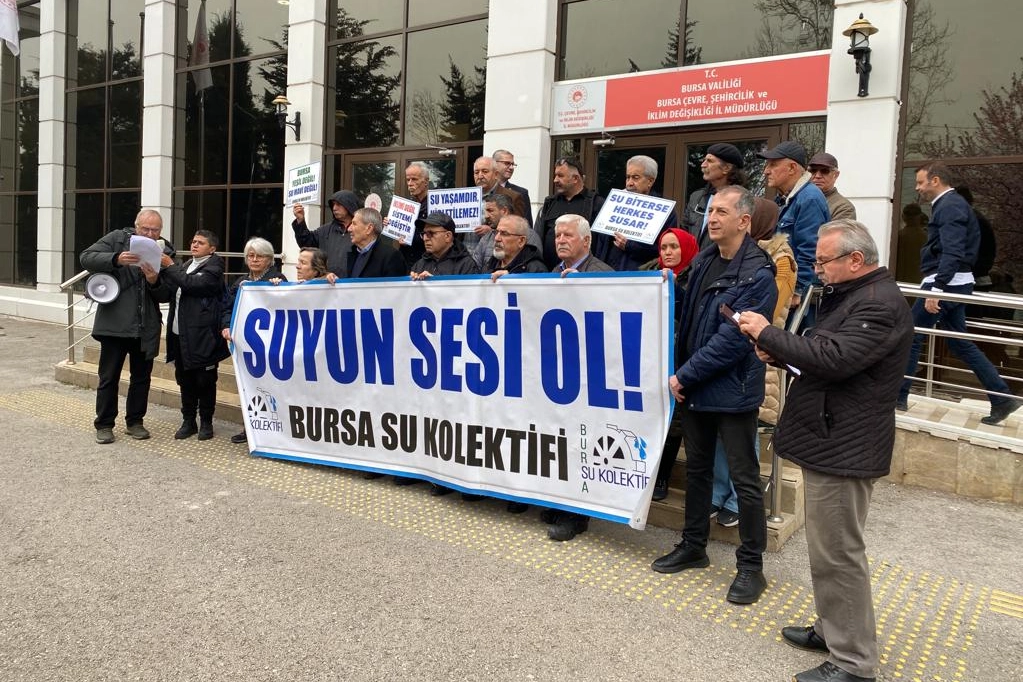 Bursa Su Kolektifi, 22 Mart Dünya Su Günü dolayısıyla Çevre, Şehircilik ve İklim Değişikliği İl Müdürlüğü önünde basın açıklamasında bulundu. Açıklama, "Ucuz işgücü göçü ile plansız nüfus artışına uğratılan kentlerdeki sorunların başında susuzluk gelmektedir" cümlesiyle başladı. Son yıllarda kış aylarında dahi yaşanan kuraklığa dikkat çekilerek, su kaynaklarının kirletilmesini engelleyecek önlemler alınması için çağrıda bulunuldu.