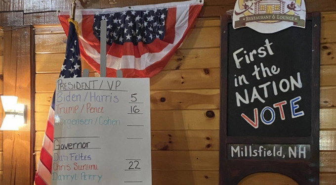 Her yıl tercihini ilk ilan eden yerleşimlerden New Hampshire eyaletinin Kanada sınırındaki Dixville Notch köyünde atılan 5 oyun tamamı eski ABD Başkan Yardımcısı Joe Biden'a gitti.