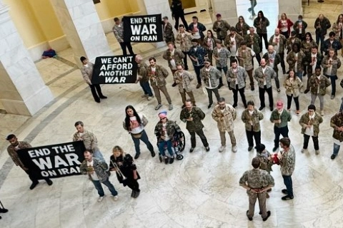 ABD'nin başkenti Washington'da İran'a karşı savaşı protesto eden gazi örgütleri, Kongre binasında toplandı.