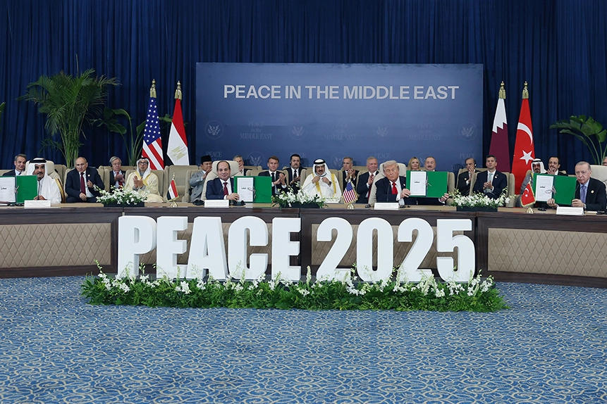 Mısır’ın Şarm eş-Şeyh kentinde düzenlenen Gazze’deki ateşkesin korunması ve barış amacıyla düzenlenen "Barış Zirvesi" kapsamında Mısır Cumhurbaşkanı Abdulfettah es-Sisi, ABD Başkanı Donald Trump, Cumhurbaşkanı Recep Tayyip Erdoğan ve Katar Emiri Şeyh Tamim bin Hamad Al Thani, Gazze için "Niyet Belgesi" imzaladı. ABD Başkanı Trump, imza töreni öncesi yaptığı açıklamada zirvede bir araya gelen ülkelere dikkat çekerek, "Muhtemelen servet ve güç bakımından bugüne kadar bir araya gelmiş en büyük ülkeler topluluğu ile karşı karşıyayız. Bunun bir parçası olmak benim için bir onur. Şimdi, birçok kural, düzenleme ve diğer unsurları kapsayan, oldukça kapsamlı bir belge imzalayacağız" dedi.