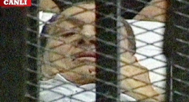 Hüsnü Mübarek, 11 Şubat'ta istifasından bu yana ilk kez, büyük bir demir kafesin içinde sedyede yatar vaziyette halkın karşısına çıktı.