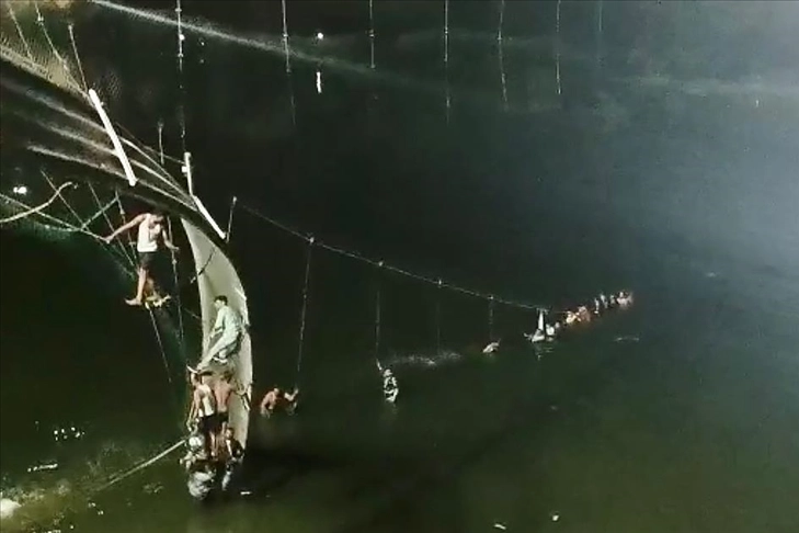 Dün, Gujarat eyaletine bağlı Morbi kasabasında Machhu Nehri’ne kurulu asma yaya köprüsü, üzerinde en az 500 kişinin bulunduğu sırada çökmüştü.