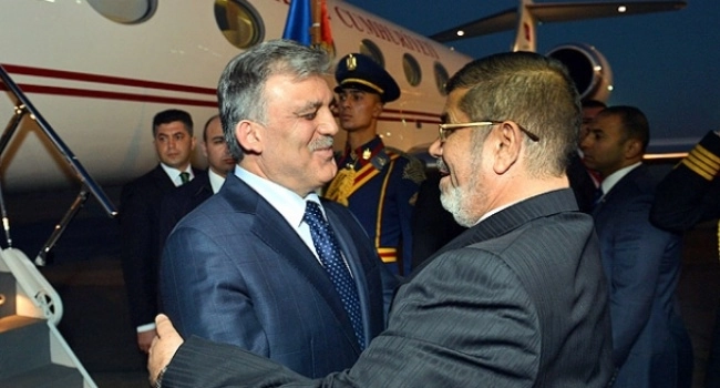 Mursi'nin Gül'ü, uçağın kapısına kadar giderek karşıladığı törende, Mısır'da bulunan Dışişleri Bakanı Ahmet Davutoğlu, Türkiye'nin Kahire Büyükelçisi Hüseyin Avni Botsalı ve yetkililer de hazır bulundu.