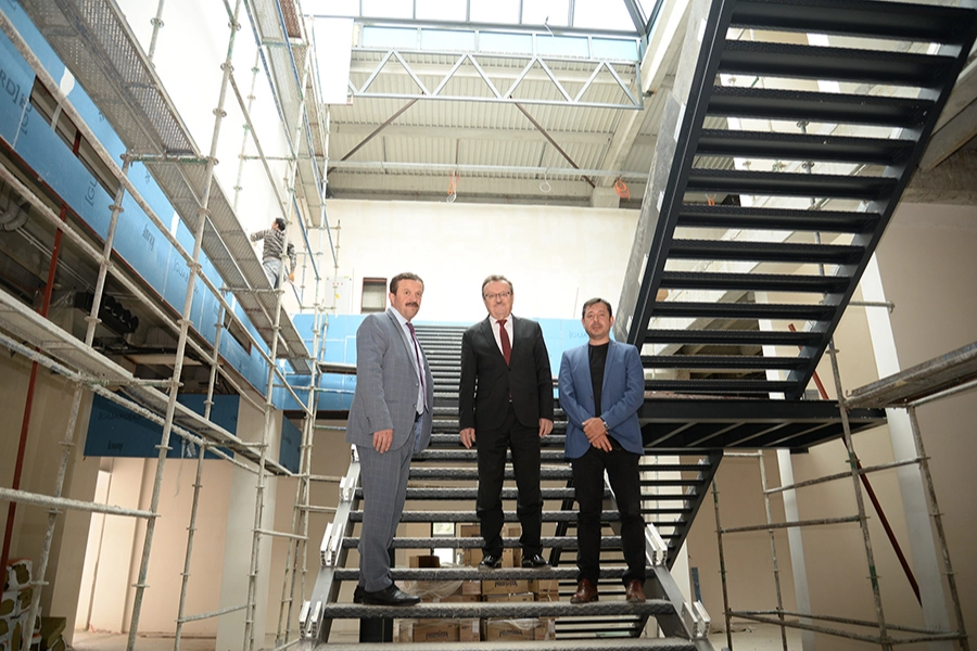 Proje kapsamında yapımı devam eden merkezi derslikler, çok amaçlı spor salonu ve yüzme havuzu, Dr. Arif Ağaoğlu İleri Teknoloji Laboratuvarı ve BUÜ Gençlik Merkezi inşaatlarını inceleyen Rektör Kılavuz, çalışmalar hakkında yetkililerden bilgi aldı.