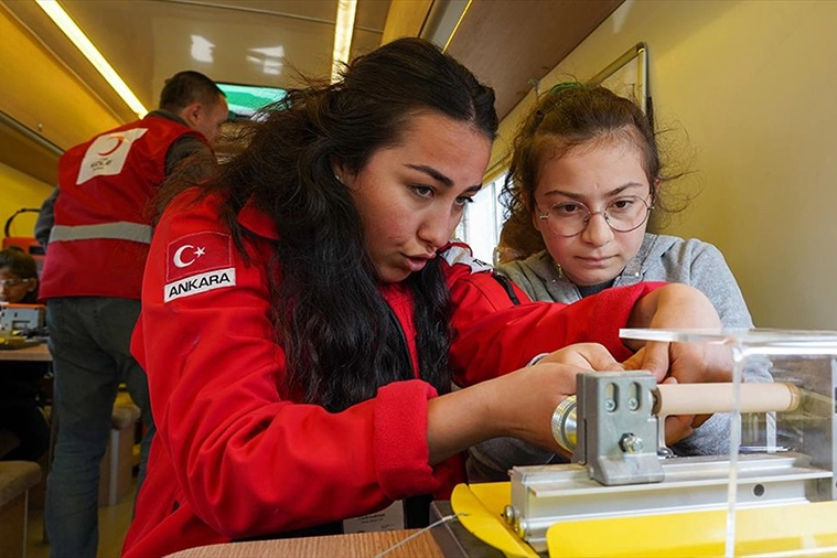 İki eğiticinin görev aldığı karavanda, çocuklara 3 boyutlu yazıcı, ahşap tasarım atölyesi, mini torna, robotik kodlama gibi eğitimler veriliyor.