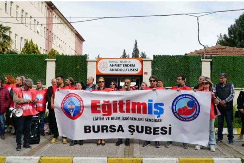 Eğitim İş Bursa Şubesi, proje okullarında çalışan öğretmenlerin görev yeri değişikliğine ilişkin Ahmet Erdem Anadolu Lisesi önünde basın açıklaması gerçekleştirdi.