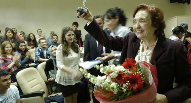 Panelin ardından kürsüye gelerek öğrencilere ve öğretim üyelerinin sorularını yanıtlayan Yazar Gülten Dayıoğlu, 50. sanat yılı kutlamalarını hayattayken görebilmenin sevincini yaşadığını belirtti.