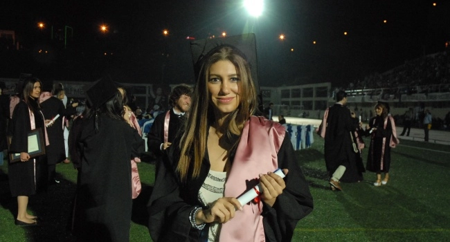 İTÜ'nün Ayazağa Kampusu'nda düzenlenen 238'inci mezuniyet töreninde cüppe ve kep giyen Nadide Sultan (Türkoğlu)'nun ismi anons edildiğinde mezun öğrenciler ve tribünlerden yoğun bir alkış yükseldi.