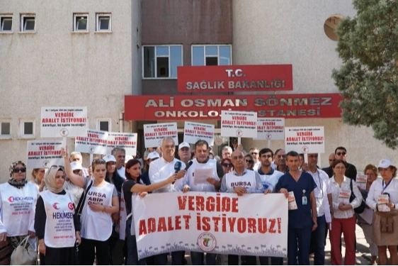 Bursa Tabip Odası (BTO) tarafından "Vergide Adalet İstiyoruz" başlıklı basın açıklaması, Ali Osman Sönmez Hastanesi önünde gerçekleştirildi. Basın açıklamasına; Bursa Tabip Odası Başkanı Dr. Kadir Binbaş, BTO Genel Sekreteri Dr. Muhsin Güllü, CHP Bursa Milletvekili Prof. Dr. Kayıhan Pala, BTO’nun önceki dönem başkanları Prof. Dr. Alpaslan Türkkan, Dr. Candan Coşkun, çok sayıda sağlık çalışanı ve sendika üyeleri katıldı.