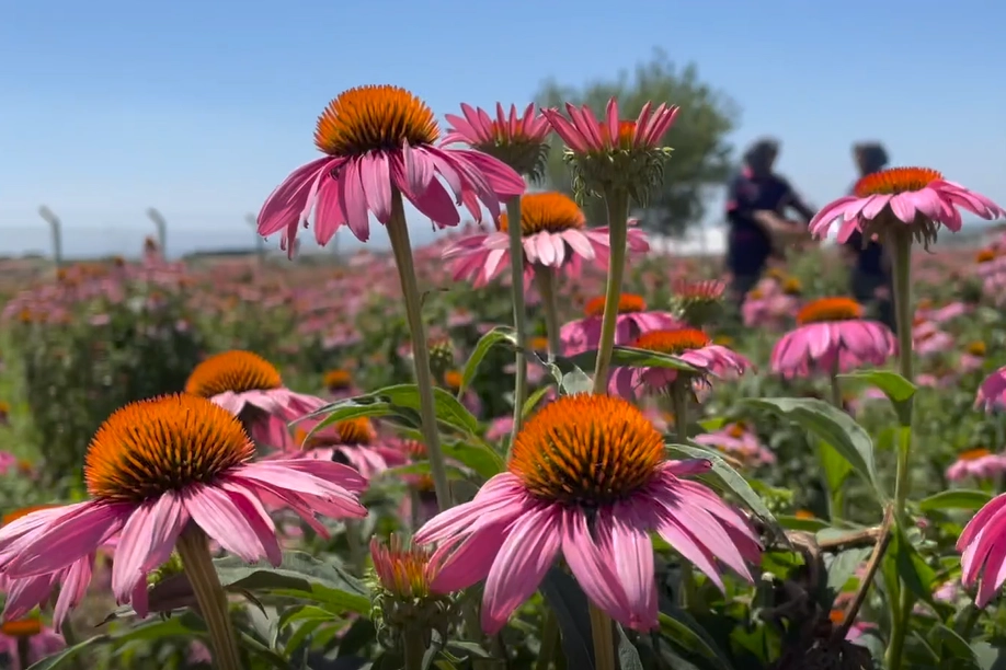 Hasada başladıklarını belirten Yıldız, "Sezon sonuna kadar sulamayla beraber devam ediyor. Aynı şekilde en son da yapraklarını 4 santimetre biçip ekinezya çayı yapan firmalara vermekteyiz. Tıbbi aromatik bitki işi yapan aktarlara, bu işi yapan toptan firmalara veriyoruz ama kendi web sitemiz ve e-ticaret sitelerine de koyduktan sonra, son tüketiciye ulaşıyoruz." dedi.