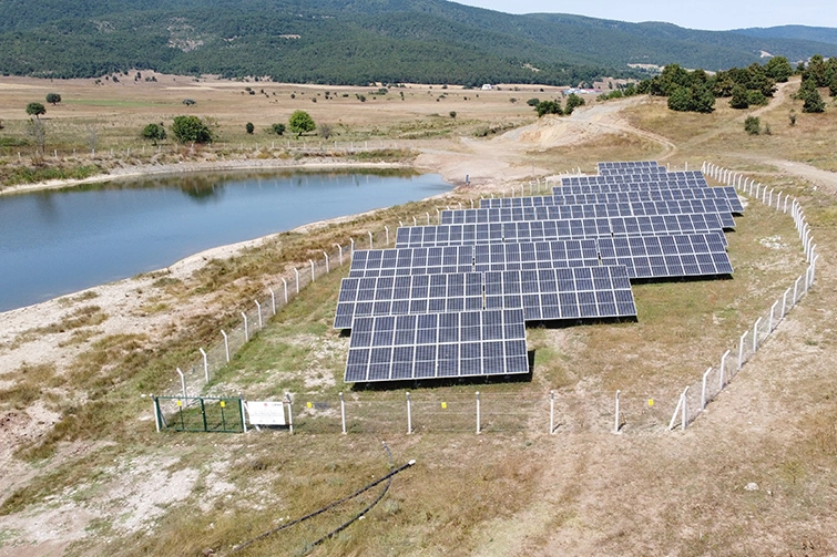 Hisarcık'ta 2 bin 150 dönüm mera ile sulanamadığı için ekilmeyen 2 bin 320 dönüm arazinin güneş enerjisi sisteminden faydalanılarak sulanması sağlandı.