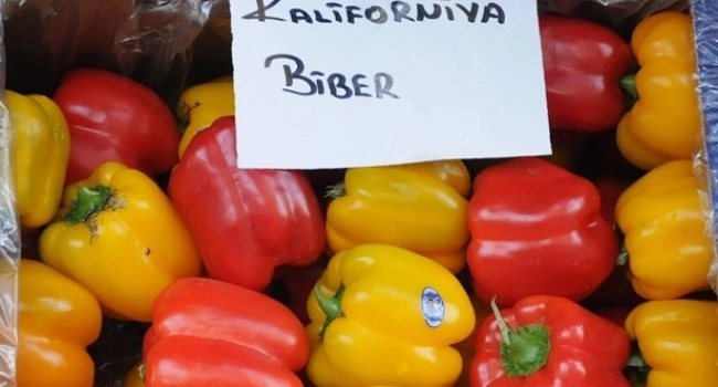 Güney ve Orta Amerika menşeli olan ve son yıllarda Türkiye'de de üretilmeye başlanan "Kaliforniya biberi", Bursa'daki manav tezgahlarında tanesi 1,5-2 liradan satılıyor.