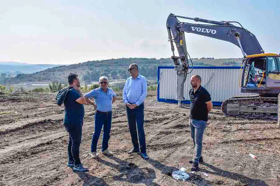 Karacabey Belediye Başkanı Ali Özkan, beraberinde Hürriyet Mahallesi Muhtarı Ahmet Kaçar ile birlikte Bursa-Bandırma yüksek hızlı tren inşaatı için mahallede kurulan şantiye alanını ziyaret etti.