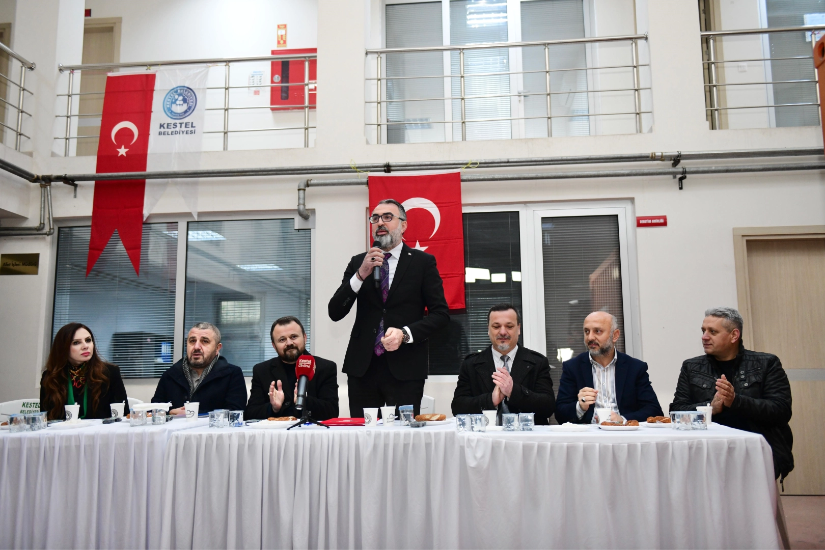 Kestel Belediye Başkanı Ferhat Erol, "Çok değerli çalışma ve yol arkadaşlarım. Ben de bir emekçi kardeşinizim. Biz de bu yollardan geldik. Allah’a hamd olsun bizlere bu makamı emanet etti. Değerli başkanıma dün de belirttim, kendi şirketimde de böyle olmuştur, ‘30 çalışanıma ekmek veriyorum’ değil ‘30 çalışanımla birlikte ekmek yiyorum’ diye bir düsturumuz vardı. Bugün de burada 321 arkadaşımla beraber Kestelimize hizmet etmeye, Kestel halkının yüzünü gülümsetmek için hep beraber çalışıyoruz. Sizler gülerseniz Kestel halkının güleceğini biliyorum.'' dedi.