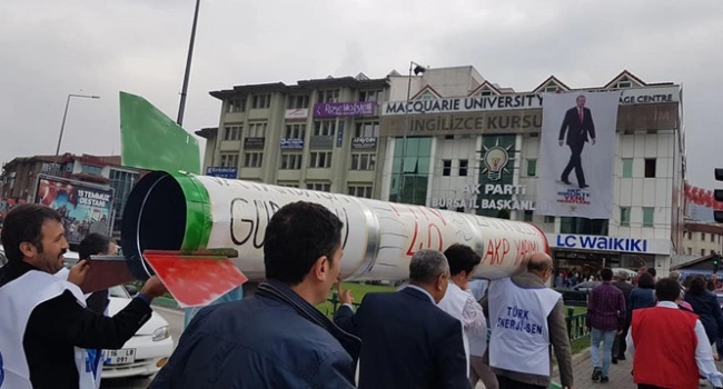Hükümetin çeşitli vergilerde yaptığı yüzde 40'lara varan zamlar tepkilere neden olurken, Türkiye Kamu-Sen Bursa İl Temsilciliği de zammı ilginç bir gösteri ile protesto etti. AKP İl Başkanlığı'nın da olduğu Şehreküstü'ndeki 15 Temmuz Demokrasi Meydanı'nda toplanan Türkiye Kamu Sen'e bağlı sendikaların üyeleri ve vatandaşlar, yüzde 40'lık vergi zammını temsili füze ile protesto etti.