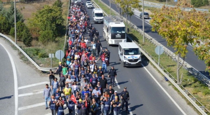 Ancak bu taleplerin işveren ve sendikamız tarafından bir karşılığının bulunmadığını gördüğümüz için, bu sabah saatlerinde Lüleburgaz'da bulunduğumuz noktadan ailelerimiz ve bizlere destek veren kamuoyuyla birlikte Şişecam'ın Tuzla'daki Genel Müdürlüğü'ne doğru bir yürüyüş başlattık.