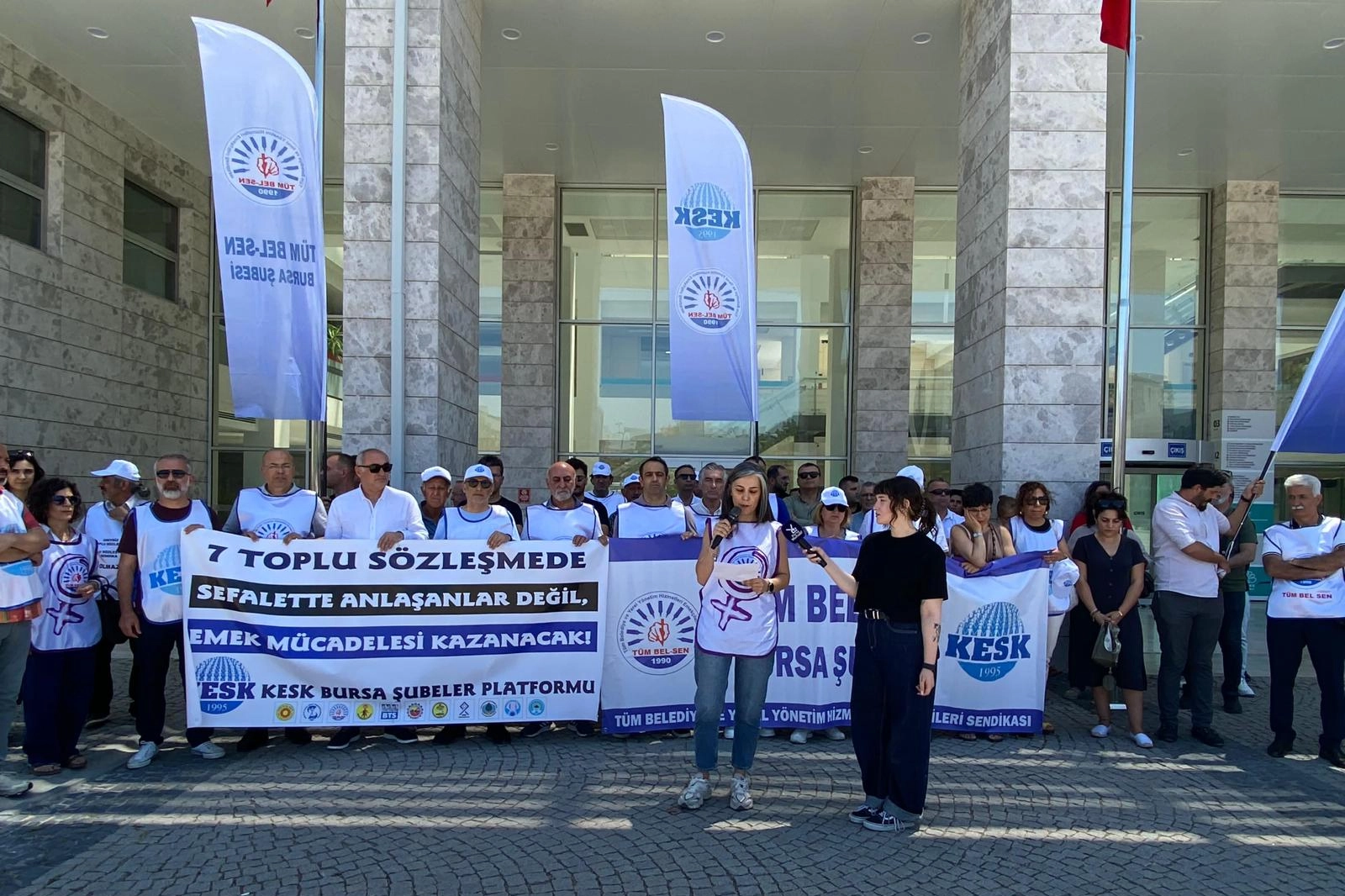 Açıklamasının sonunda tüm yerel yönetim emekçilerine çağrıda bulunan TÜM BEL-SEN Bursa Şube Başkanı Pınar Koşal şu sözlerle konuşmasını sonlandırdı:
