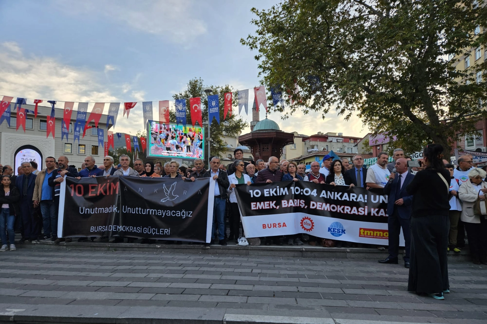 8 yıl önce 10 Ekim günü Barış Mitingi için Ankara Garı önünde toplananlara yönelik canlı bomba saldırısında hayatını kaybeden 103 kişi Bursa'da anıldı.