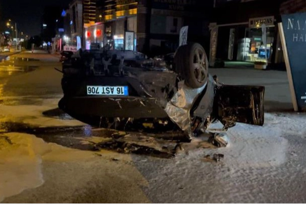 Olay, merkez Nilüfer ilçesi İzmir Yolcu Caddesi üzerinde meydana geldi. Edinilen bilgiye göre, Burak K. idaresindeki 16 AST 706 plakalı araçla seyir halindeyken, cadde üzerinde direksiyon hakimiyetini kaybetti. Kontrolden çıkan otomobil refüje dalıp, ağaçları ve aydınlatma direğini devirip takla attı. Yaklaşık 150 metre savrulan araçta sürücü ve yanında bulunan bir kadın çevredekiler tarafından araçtan çıkarılırken, ihbar üzerine olay yerine sağlık, polis ve itfaiye ekibi sevk edildi. Dumanların yükseldiği araç aniden alev alırken, yaralılar ilk müdahalenin ardından Çekirge Devlet Hastanesine sevk edildi. İtfaiye ekiplerince yangın, söndürüldü.