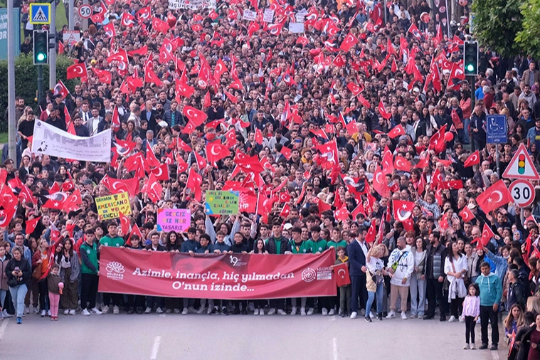 Türkiye Cumhuriyeti’nin kuruluşuna giden yolun başladığı 19 Mayıs 1919’un 104. yıl dönümünde Nilüfer Belediyesi’nin düzenlediği etkinliklerde, binlerce vatandaş bayram sevincini hep birlikte yaşadı. 19 Mayıs Atatürk’ü Anma Gençlik ve Spor Bayramı kutlamaları için bu yıl da binlerce kişi Fatih Sultan Mehmet Bulvarı’nda düzenlenen yürüyüşe katıldı. Nilüfer Belediyesi’nin “19 Mayıs’ta İkinci Yüzyıl’a Yürüyoruz” sloganıyla düzenlediği yürüyüş, coşku içinde gerçekleşti. Yürüyüşe, Nilüfer Belediye Başkanı Turgay Erdem, CHP Bursa Milletvekili Kayıhan Pala, geçmiş dönem Nilüfer Belediye Başkanı ve CHP Bursa Büyükşehir Belediye Başkan Adayı Mustafa Bozbey de katıldı. Gençlerin yoğun ilgi gösterdiği yürüyüşe katılanlar, marşlar eşliğinde Nilüfer Belediyesi Halk Evi’ne kadar yürüdü. Halk Evi önündeki Nilüfer Cumhuriyet Meydanı’nda da bayram coşkusu devam etti.