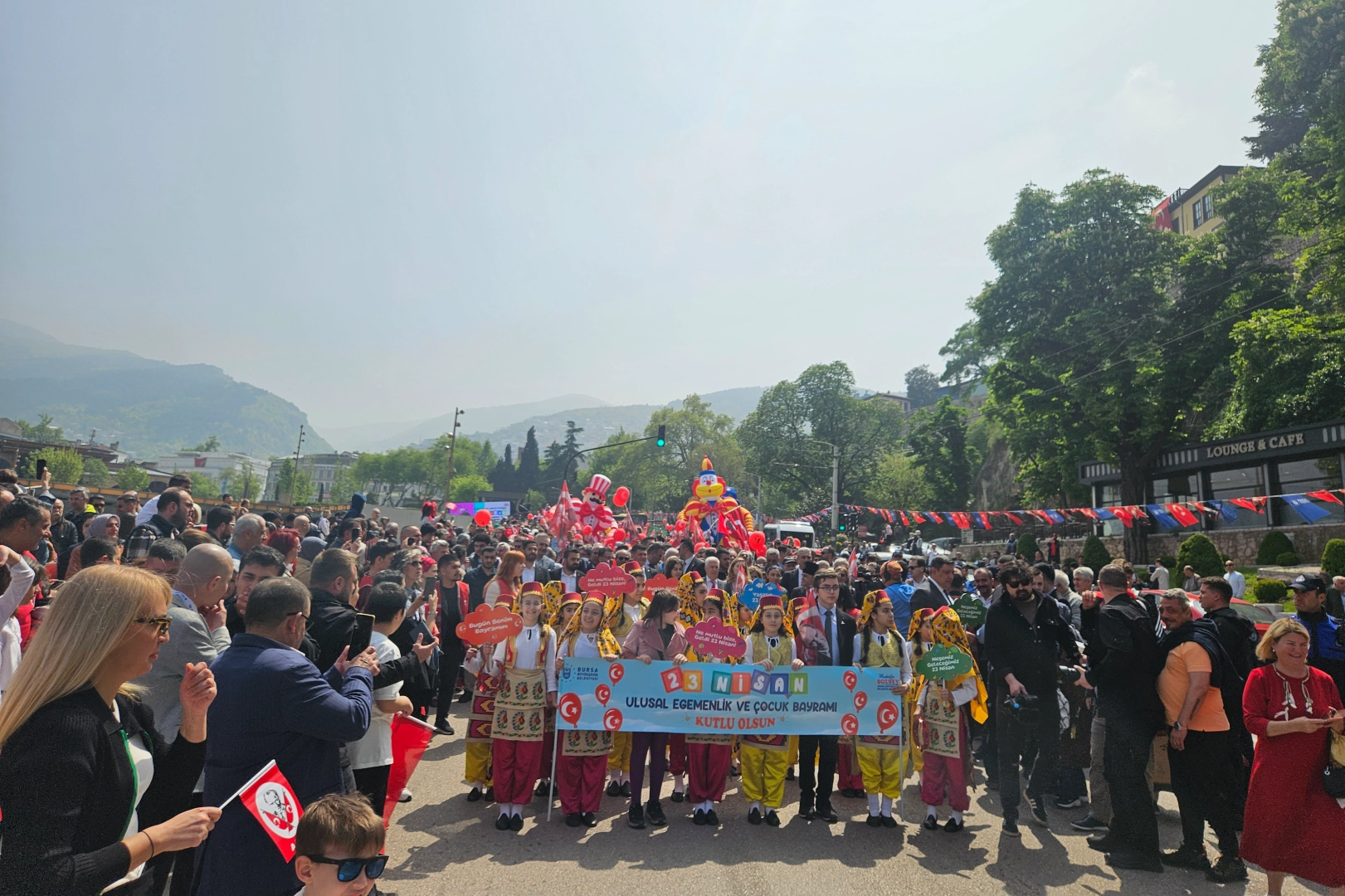23 Nisan Ulusal Egemenlik ve Çocuk Bayramı, tüm Türkiye’de olduğu gibi Bursa’da da büyük bir coşkuyla kutlandı. Bursa Büyükşehir Belediyesi tarafından ‘Onların gülüşü, hepimizin yarını’ teması ile hazırlanan ‘Çocuk Şenliği’, dolu dolu program içeriğiyle çocuklara unutulmaz bir gün yaşattı. 23 Nisan coşkusu, yüzlerce çocuk ve ailelerinin katılımıyla Çarşıbaşı’ndan Atatürk Stadyumu Kütüphanesi’ne doğru yapılan kortej yürüyüşüyle başladı. Ellerindeki Türk bayraklarıyla marşlar ve şarkılar söyleyerek yürüyen çocuklara, Büyükşehir Belediye Başkanı Mustafa Bozbey ve eşi Seden Bozbey, CHP İl Başkanı Nihat Yeşiltaş, CHP PM Üyesi Canan Taşer, CHP Bursa Milletvekilleri Nurhayat Altaca Kayışoğlu ve Kayıhan Pala, Büyükşehir Belediyesi Genel Sekreteri Doç. Dr. Ergül Halisçelik, Bursa Kent Konseyi Başkanı Prof. Dr. Ertuğrul Aksoy, ilçe başkanları, Büyükşehir Belediyesi bürokratları da eşlik etti. Çocuklar, ellerindeki pankart, Türk ve Atatürk bayraklarıyla Atatürk Stadyumu Kütüphanesi’ne kadar bando eşliğinde coşkuyla yürüyüş gerçekleştirdi. “Ulusal Egemenlik ve Çocuk Bayramımız kutlu olsun”