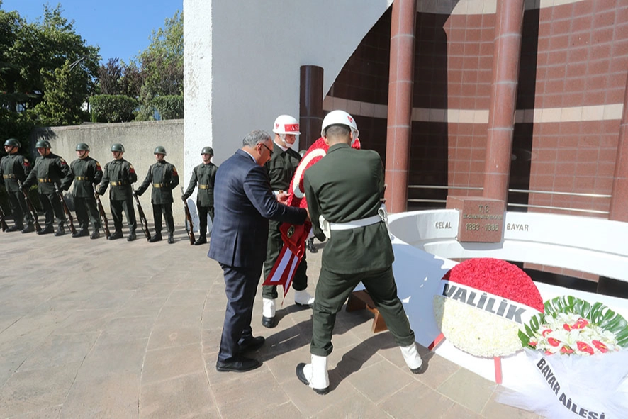 Gemlik'in Umurbey Mahallesi'nde bulunan anıt mezardaki törene, Celal Bayar'ın torunları ile Cumhurbaşkanlığı İdari İşler Başkanı Metin Kıratlı, Bursa Valisi Mahmut Demirtaş, Gemlik Kaymakamı Hasan Göç, İl Emniyet Müdürü Sabit Akın Zaimoğlu ile siyasi parti ve sivil toplum kuruluşlarının temsilcileri katıldı.